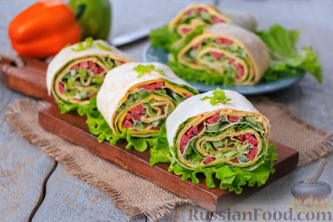Итак, вот несколько рецептов рулетиков из лаваша с различными начинками.