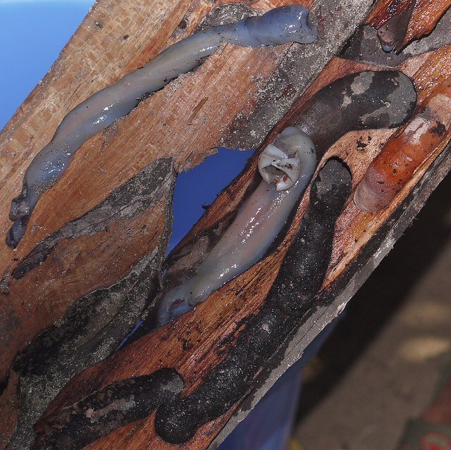ТАМИЛОК- МОРСКОЙ ЧЕРВЬ Тамилок водится в стволах гниющих мангровых деревьев. Называют их и корабельными червями. Они часто проедают деревянные корабли, чем наносят большой урон судоходному хозяйству. Довольно часто они становились причиной гибели морских судов, и моряки всеми способами пытались избавиться от вредителей, которые миллионами селились на днище корабля. Буквально за полгода колония корабельных червей способна уничтожить целый флот. Тамилок или древесный червяк, является популярным деликатесом на острове Палаван на Филиппинах. Оказывается это не совсем червь, это вид двустворчатого моллюска. На переднем конце имеется раковина, им они и роют свои тоннели в древесине. Тоннели могут достигать 3-5 метров. Взрослые особи вырастают до метра в длину. Местные жители запивают его спиртным. И едят совсем без соуса. А так, поймал и скушал пока шевелится ) Состав маринада: сахар, соль, уксус и перец. Или смесь сока цитрусового (каламанси) и перца чили. Если захотите отведать такое