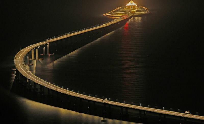 После долгих девяти лет строительства и скандалов Китай наконец официально объявит об открытии самого длинного моста через море в мире. Церемония пройдет во вторник в Гонконге.