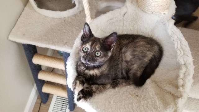 Муж и жена из штата Айдахо уже держали дома одну кошку, но потом посчитали, что им нужна вторая. Чтобы подобрать себе котенка, они приехали в приют Happy Jack Cats, Inc. Управляющая Эмили Салливан показала супругам трех котят, которых недавно привезли из пригорода после того, как нашли их возле тела кошки-мамы, которую сбила машина. Котят звали Артемида (пестрая кошечка), Геракл (черный мальчик) и Аполлон. Артемида "Когда мы вошли в их комнатку, котята бегали и играли на полу. Супругам сразу же полюбилась Артемида, она тут же залезла им на колени", - рассказывает Эмили.