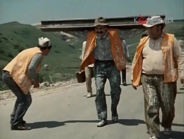 Правда, в грузинской комедии он не такой импозантный, самоуверенный красавчик-хозяин, как Абдулла. В дорожных новеллах ему вечно достается, например, пари держат его друзья, а отдуваться за это (тащить на себе тяжеленный рельс больше 100 кг под жарким солнцем 7 км) приходится ему.