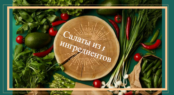 Всем нам порой не хватает времени на готовку, а хочется чего-то эдакого, так вот специально для вас попробовал собрать быстрые, вкусные салаты, которые готовятся из 3 ингредиентов. Майонез и соль я не учитывал, так что это сугубо на ваш вкус. Первый рецепт будет о салате, который готовится из: Готовится быстро, вареные яйца нарезаются мелко, огурчик соломкой, а сыр потереть на терке. Всё это не смешивается, а подается на тарелке отдельными кучками, политыми соусом. Каждый должен перемешать сам) Этот салат я называю " Филадельфия", так как в состав него входит этот сыр, помимо него, помимо него в состав входит отваренный рис и лосось. Салат выходит дорогим, но по вкусу напоминает тот самый ролл. Очень вкусный, можно ещё добавить кусочки авокадо, но тогда это будет 4 ингредиента) Помидорки с чесноком, безумно вкусный закусочный салат: Сыр натирается на крупной терке, а чеснок на мелкой, всё это смешивается вместе с майонезом или сметанным соусом и выкладывается на помидоры, порезанные к