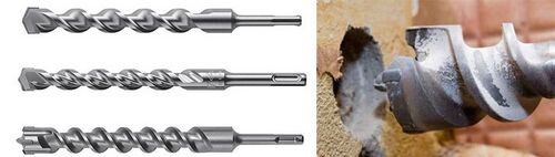 Конструкция любого бура по бетону используемого для комплектации перфоратора. Хвостовик. При помощи этого конструктивного элемента инструмент фиксируется в патроне перфоратора. В зависимости от категории крепежной системы, хвостовики могут иметь значительные конструктивные отличия. Тело. На него приходится основная нагрузка. Чтобы обеспечить высокую надежность тела бура, для его изготовления используют особо прочные сорта стали. Режущая часть. Выполняет основную работу по сверлению отверстий. В зависимости от назначения, его режущая часть может иметь различную конструкцию и выполняется из разных материалов. Производят режущие части с алмазным напылением и из твердосплавных пластинок.