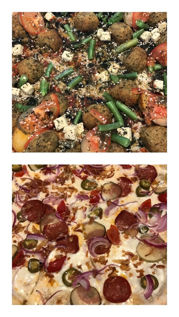 Переход на веганство вовсе не означает отказ от любимых блюд. Мы докажем вам это на примере пиццы - веганская( без животных компонентов пицца с фалафелем понравится даже любителям классической пиццы, не фанатам веганского типа питания. Мы решили сделать пост-сравнения двух пицц - веганской и обычной. Посмотрим, какая пицца окажется вкуснее и полезнее :) Обе пиццы- Хот Слайс и Фалефельная из Слайс пицца. Ежедневно с 09-30 до 23-00