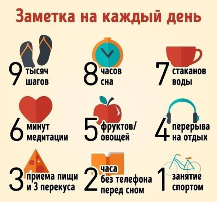 Правильный распорядок дня это не так сложно, как кажется на первый взгляд. С ним справится человек любого возраста, типа характера, образования, национальности и социального слоя, который умеет считать до 9. Никогда еще цифры не были так полезны в вопросе улучшения самочувствия, как сегодня. Пользуйтесь простым пошаговым алгоритмом. И пусть ритм Вашей жизни будет активным, здоровым и насыщенным! Хорошего дня и прекрасного самочувствия! Если полезно, делитесь с друзьями и оставайтесь на связи!