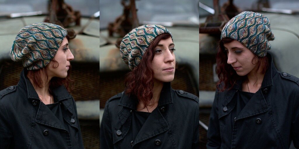 Интересная шапка, связанная платочной вязкой по уникальной технологии в модных цветах нынешней осени. Размер: для обхвата 45.75 [50.75, 56, 61] см. Окончательные измерения: 38 [42, 45.75, 49.5] см. Облегание определяется вертикальной плотностью, если ваша плотность отличается, то выполняйте больше или меньше панелей узора для достижения желаемого размера. 1” (дюйм) = 2,5 см. На фото показана шапка в размере 22 дюйма / 56 см, а размер головы у модели 21 дюйм /53,25 см по окружности. В данном проекте важна плотность и в высоту и в ширину. От плотности по рядам зависит облегание шапки, а от плотности по петлям зависит глубина шапки. Подробнее