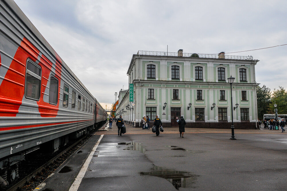 Съездить в Псков хотел давно, но он так далеко находится от Москвы, что проще сгонять на Камчатку, чем добраться до Пскова. Сейчас же туда стала летать новая авиакомпания, рейсом которой можно хотя бы удобно и недорого выбраться из Пскова в воскресенье вечером, ну а приехать туда ночным поездом с пятницы на субботу. В Пскове я уже был 500 лет назад на школьной экскурсии, и запомнил только скопление остатков церквей у кремля, да памятник Невскому с ратью. Сейчас же хотелось получше изучить город. Погоду метеорологи ванговали отвратную – дождь и холод. Похоже, мы вновь выбрали «не то время» для посещения города. Действительно, Псков встретил нас серым небом, как в родном Полоцке, серостью тумана и лужами. На первый взгляд Псков показался таким же, как и все российские города… В общем, смотрите сами. 16 часов в поезде без связи, и мы на месте. Как и везде, на привокзальной площади – машины, лужи, автобусы. А для пассажиров – палатки с напитками и чебуреки. Дождь прекратился, и мы прин