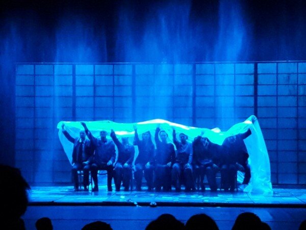 Огромное количество воды - это непролитые слезы главной героини Науаль и всех погибших в этой страшной резне. Вода то выплескивается из ведра, которые в этой страшной истории становились первым пристанищем новорожденных детей, то словно строчит из пулемета, "убивая" своими брызгами вокруг, то проливается на сцену дождем, словно небо тоже не может сдержать своих слез. БРАВО все причастным!