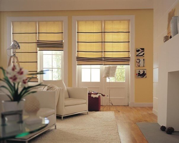 Шьем сами модные римские шторы. Необходимо: • плотная ткань • деревянный брус толщиной 2,5 см и шириной 5 см, длина бруса равна ширине шторы • деревянные или металлические рейки длиной меньше ширины шторы на 3 см • деревянный брусок, равный ширине шторы (для того чтобы оттянуть низ шторы) • отделочная тесьма • лента велкро (липучка), ее длина равна ширине шторы • мелкие гвоздики • пластмассовые или металлические кольца диаметром приблизительно 12 мм • три куска нейлонового шнура, длина одного куска — две длины шторы одна ширина шторы • крепежная деталь для шнура шторы Благодаря своей функциональности и стилистической простоте она отлично впишется в любой интерьер независимо от стиля его оформления. Главное — правильно подобрать ткань. Раскрой Измерьте оконный проем. Ширина шторы равна ширине окна 5 см на боковые швы (2,5 см с каждой стороны). Длина шторы равна высоте окна 12 см припусков (двойная подгибка шириной 5 см по нижнему краю и 2 см припуска на шов по верхнему к
