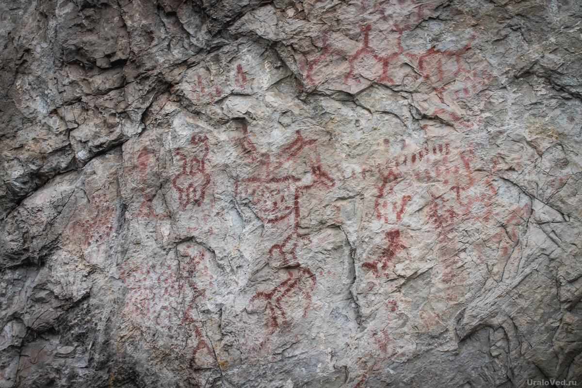 Писаница Двуглазый камень расположена на реке Нейва, в окрестностях города Алапаевск (Свердловская область). Это самая большая писаница на реке Нейве по количеству фигур. Среди древних рисунков можно разглядеть антропоморфные фигуры, копытных животных, черточки, зигзаги. Есть тут и рисунки, похожие на соты. Некоторые фанаты непознанного выдвинули версию, что наши далекие предки знали органическую химию. Действительно, «соты» внешне напоминают химическую формулу, но смысл рисунка явно был иным... P.S. Друзья, пожалуйста, подпишитесь на канал проекта "Ураловед" в Дзене и нажмите "палец вверх", чтобы здесь появлялось еще больше интересных публикаций про Урал. А ещё поделитесь ссылкой с друзьями в соцсетях. Спасибо!