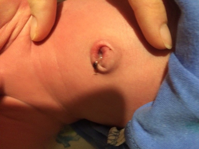 Зачастую воспаление дна пупочной раны у детей появляется примерно на трети — пятые сутки после рождения. Эта ранка образовывается в месте где отпадает присохший отросток оставшейся пуповины. Медики ставят в известность родителей о том, что купание младенца возможно только в воде, которая была прокипячённой. Затем в приготовленной воде разводится марганцовка(вода должна стать светло-розовой). Именно в такой воде 14 дней необходимо купать грудного ребёнка до полного заживления пупочной ранки. Затем, после купания младенца нужно сделать несколько процедур по обработке пупка: 1. Вымыть руки. 2. Обмокните ватную палочку в трёх процентный перекись водорода и очистите пупок от отделяемого секрета. 3.Сухой ватной палочкой высушите пупок малыша. 4. 2%-ным раствором бриллиантовой зелени (зеленка) смажьте ранку на пупке. Необходимо знать: При появлении неизвестной жидкости либо гнойных выделениях, покраснения на пупочной ранке в срочном порядке проинформируйте об этом педиатра. Эти признаки буд