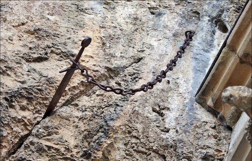 С древности и по наше время не останавливаются войны, а какая война без оружия? Мы расскажем вам о легендарных мечах, мечах королей и князей. 1. Дюрандаль Меч самого знаменитого героя французских сказаний и легенд Роланда(он же Хрёдланд), который он получил в подарок от Карла Великого после принятия присяги. Изготовлен был из того же метала, что и меч самого короля. В его рукояти были мощи святых, кровь, волосы и зубы. В середине 12 века появилась легенда, что во время защиты часовни Нот-Дам Роланд бросил меч, что так и остался в стене. Кстати, там его уже нет, в 2011 г. его извлекли и отправили в Парижский музей. 2. Жуайёз В переводе Радужный или Радостный, меч того самого Карла Великого, что дарил Дюрандаль Роланду. Меч был личным оружием короля, а в последствии использовался для коронации, сейчас выставляется в Лувре. Согласно анализу, конкретно этот меч не мог быть тем самым, есть теория, что он был создан или как копия того самого Жуайёза, или используя его части. Меч п