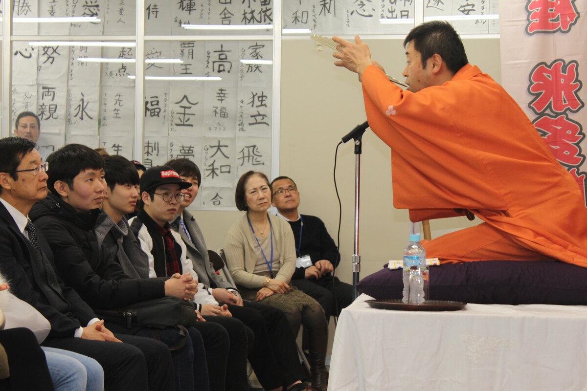 Учить японский язык нужно хотя бы затем, чтобы сходить на спектакль театра «ракуго», считает Анна Ременец, руководитель компании по организации обучения в Японии Manabo. Говорят, что у японцев отсутствует чувство юмора, но это не так — иначе на свете не было бы традиционного искусства «ракуго». По сути это моноспектакль без декораций, где актер, восседая на плоской подушке, используя лишь веер или хлопчатобумажное полотенце, разыгрывает перед зрителем небольшие комические сценки. Я хочу рассказать, как прошел спектакль «ракуго» в токийской языковой школе Аояма, с которой я сотрудничаю. Для студентов «ракуго» — один из способов в игровой форме попрактиковаться в японском языке: каждый год в январе в школу приходит актер-«ракугока» по имени Кацура Ёнэтаро. Посетить его шоу приглашают учеников со средним уровнем знания японского языка и выше. В этом году выступления мастера были особенно запоминающимися. Смех зрителей не утихал как во время самого моноспектакля, так и в моменты общения