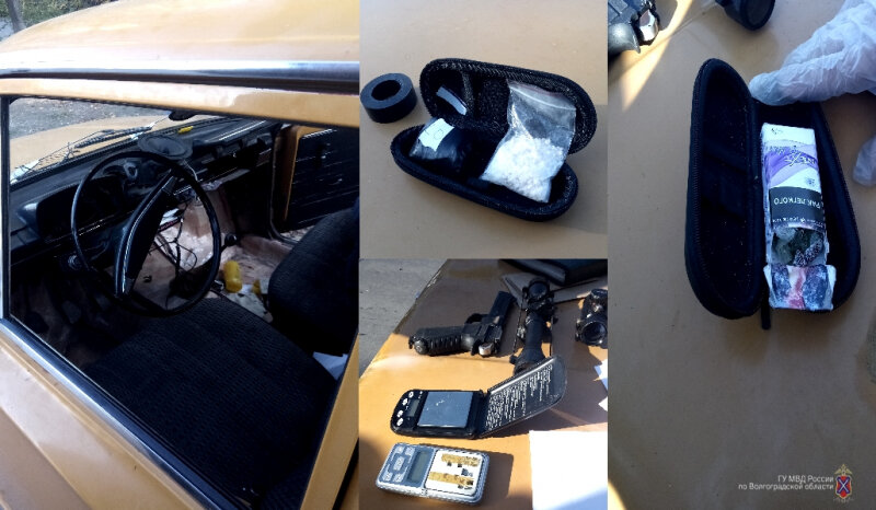 Автомобиль «ВАЗ-2101» для проверки документов остановили сотрудники ДПС ГИБДД городского Управления МВД 14 октября 2018 года на улице Карбышева в Волжском. Как ни странно, но у 18-летнего водителя не оказалось прав на управление автомобилем. Неприятную ситуацию усугубляло подозрительное поведение двух пассажиров нарушителя ПДД и правоохранители решили проверить автомобиль «по полной». При досмотре машины в присутствии понятых были обнаружены футляры, с наркотическим веществом, состав которого подтвердили в эспертно-криминалистическом центре ГУ МВД России по Волгоградской области. Исследование показало, что в футлярах находился синтетический наркотик, веса которого было достаточно для приготовлен
