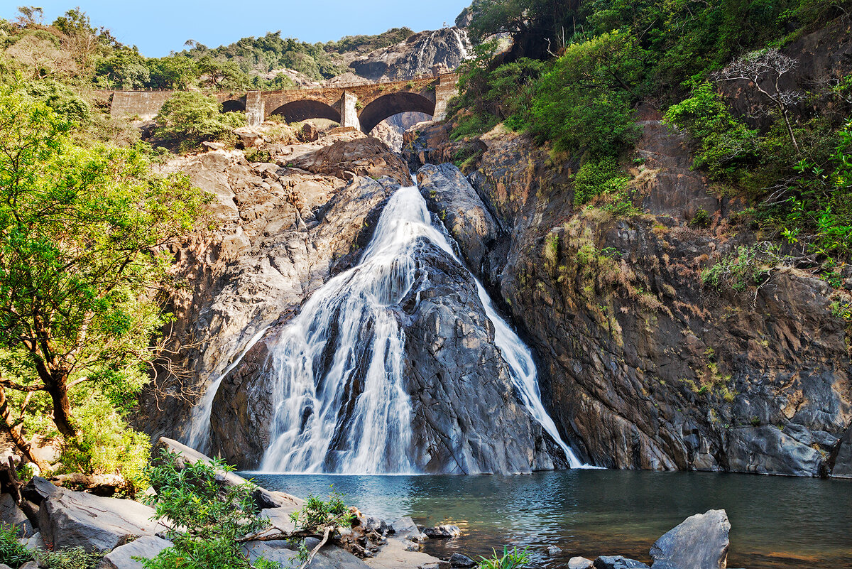 Водопад Дудхсагар – одна из самых известных достопримечательностей в Южной части Гоа. Дудхсагар является вторым по величине водопадом в Индии, и его высота составляет более 300 метров. Дудхсагар также привлекает туристов своей красотой и цветом воды. Белая, словно молоко, она падает среди темно-зеленых растений, из-за чего получается яркий и красивый контраст, который никого не оставит равнодушным. Когда ехать? Лучший период для посещения этого знаменитого места – с ноября по февраль. В разгар весны здесь очень душно и жарко, так что находиться человеку там довольно тяжело. Летом из-за проливных дождей дорогу иногда размывает, и пробраться к водопаду просто невозможно. Доехать сюда можно только на внедорожниках, так как водопад находится в горах. Путь к достопримечательности тернист, но невероятно живописен: настоящий тропический лес, захватывающие дух виды, богатая флора и фауна. Час езды на джипе, пятнадцать минут пешей прогулки по каменистым тропинкам – и среди кокосовых пальм водоп