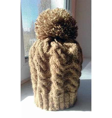 Вязанная шапочка косами с помпоном спицами. Схема, описание