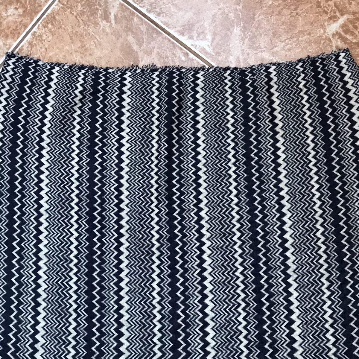 Следует для начала сказать что такое кромка, вдруг кто не знает. Это узкая полоска по долевому краю ткани (вдоль нити основы), отличающаяся выработкой. Кромка не расползается и предотвращает от распадания нитей и волокон вдоль рулона. То есть лекала выкладываем вдоль этой кромки. Иногда встречается стянутая кромка. Можно назвать это дефектом. Раскладывать лекала на ткани с такой кромкой не рекомендуется, иначе будет неточный крой. Так что же с этим делать? - можно просто срезать кромку вдоль всего края, обязательно на одну и ту же ширину - или сделать надрезы вдоль всего края, под углом, например, как у меня. Можно даже надрезать на пару миллиметров подальше. У меня вот маленький кусочек был, всего сантиметров 40, а представляете, что делается когда метр или два? Не забывайте ставить палец вверх!