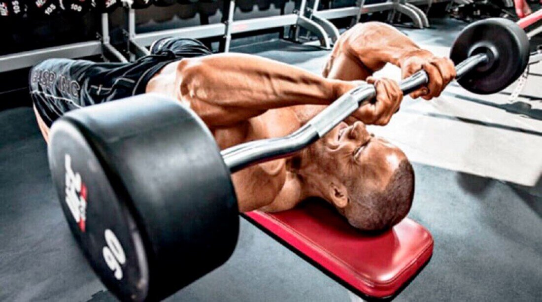 Трехглавая мышца плеча или же трицепс является самой большой мышечной группой наших рук, а также занимает значительную часть объёма плеча и поэтому развитие трицепса является одной из основных задач при тренировке мышц рук и как нельзя лучше в этом деле себя зарекомендовало такое упражнение как французский жим. Данное упражнение довольно универсально и имеет множество вариацией, именно о нем и различных способах его выполнения и пойдет речь в данной статье. Французский жим лежа на скамье с грифом Данная вариация является классической и, наверное, самой распространенной среди посетителей тренажерного зала, но есть в нем и свои нюансы о которых мы и поговорим. Лучше всего для выполнения данного упражнения подойдет наклонная лавка которая имеет угол в 30*. Данное положение тела позволит вам при выполнении данного упражнения уменьшить нагрузку на связки у больше сконцентрироваться на рабочей мышечной группе. Так же вам лучше выбрать изогнутый W-образный гриф вместо классического прямог