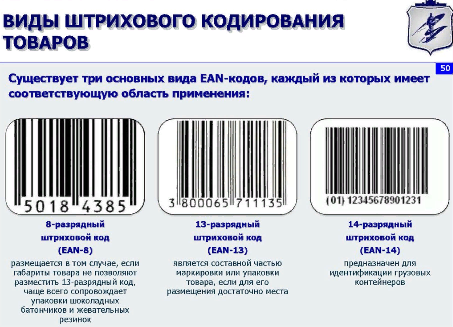 ШТРИХ-КОД и его расшифровка Шрих-код - это закодированная информация в виде чередования светлых и темных полос разной ширины цифр, считываемые с помощью сканера. Наиболее распрастраненный Штрих-код состоит из 13 цифр (EAN-13). Первые 2-3 цифры обозначают код страны, например у России (460-469), следующие 5-6 цифр являются кодом производителя товара, следующие 3 цифры - это код товара, последняя цифра является контрольной и преднозначена для определения подленности товара. Расчет контрольной цифры 4607017212936 Сложить цифры на чётных местах: 6+7+1+2+2+3=21 Полученную сумму умножить на 3: 21*3=63 Сложить числа на нечетных местах: 4+0+0+7+1+9=21 Сложить числа полученные в пункте 2 и 3: 63+21=84 Отбросить десятки: 84-80=4 Из числа 10 вычесть полученную цифру: 10-4=6 Пример: Йогурт DANONE "Активиа" масса 290 г. 2,0% жирности. 4600605015322 1 6+0+0+0+5+2=13 2 13*3=39 3 4+0+6+5+1+3=19 4 39+19=58 5 58-50=