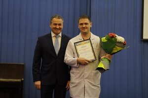 Заведующий урологическим отделением Рязанской областной клинической больницы Дмитрий Карпов стал обладателем свидетельства на получение президентского гранта. 15 октября в ОКБ свидетельство молодому врачу вручили главный федеральный инспектор по Рязанской области аппарата полномочного представителя президента РФ в ЦФО Сергей Яковлев и первый заместитель министра здравоохранения региона Владимир Грачёв, сообщает сайт регионального правительства.