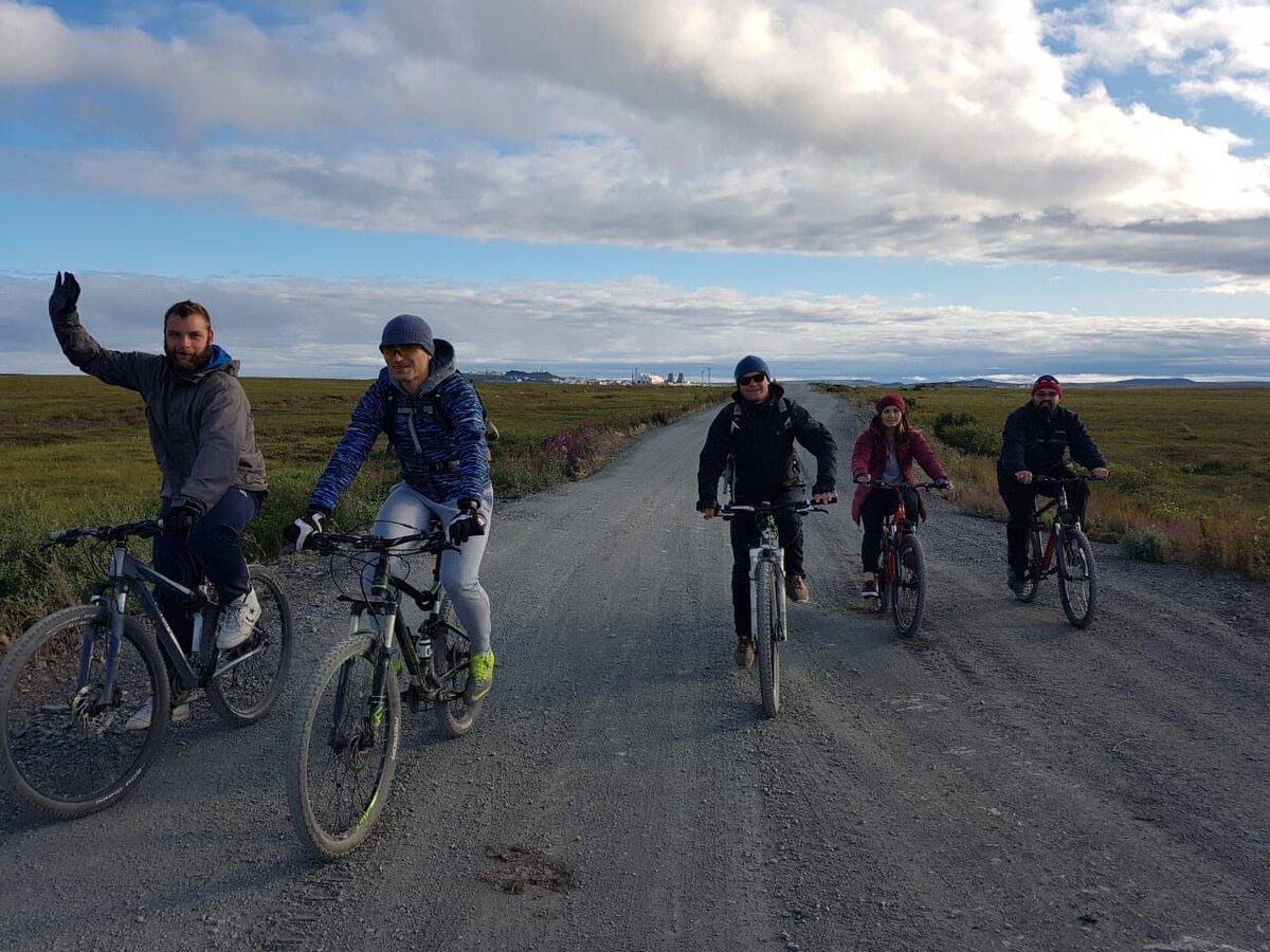 (Август 2018) На протяжении всего лета анадырские велолюбители организованно выезжают за город по утрам. Встречаются у местной АЗС в 6:20. Ждут десять минут и выдвигаются в сторону сопки Дионисия. Едут примерно 45 минут, делают короткий привал, и поворачивают обратно, так чтобы к восьми утра уже быть дома. Заезды регулярны по понедельникам и пятницам в любую погоду. Идейный вдохновитель движения Александр Лазутин объявил о затеи ещё в конце мая. Мне она очень понравилась, но поддержать её делом не смог, так как первого июня улетел в долгий чукотский отпуск. Оттуда с некой долей зависти наблюдал в соцсетях фотоотчеты с первых заездов. Если не ошибаюсь самый первый был с температурой около нуля, ветром и целым одним участником (я очень жалел, что это был не я). Со временем погода улучшалось, а любителей крутить педали прибавлялось. Я вернулся в конце июля и хотел немедленно принять участие. Но это оказалось не так просто. Во-первых - у меня нет своего велосипеда. Кататься я люблю,