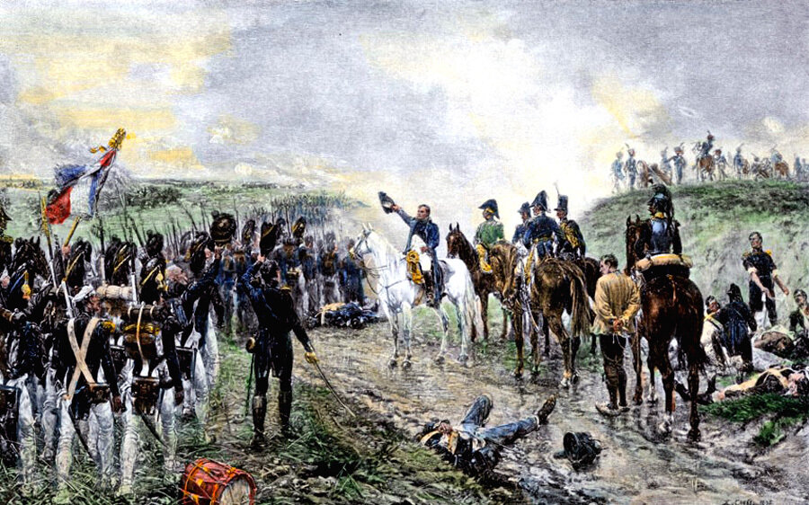 Наконец Наполеон приказывает покинуть и эту позицию. Гвардейские батальоны отходят сохраняя порядок. Время от времени они останавливаются, выравнивают линии каре, отгоняют приближающегося неприятеля стрельбой.