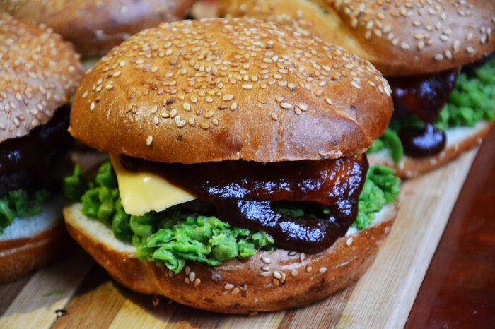 Да, в итоге получается крайне сытный и вкусный бургер, которым будет круто перекусить в пабе между пьяными драками и распеванием песен про независимость Ирландии. Основной вкус идет от соуса, в нем хорошо чувствуется вкус стаута, его жженость и солодовость, сильный вкус оттеняет нежное, но свежее гороховое пюре, а между всем этим буйством вкуса запряталась котлета, чей вкус выигрышно подчеркивают остальные ингредиенты. Лично мне этот бургер нравится не только за вкус, но и за внешний вид, надеюсь он также понравится и вам! Увидимся на дне Святого Патрика, Erin Go Bragh!