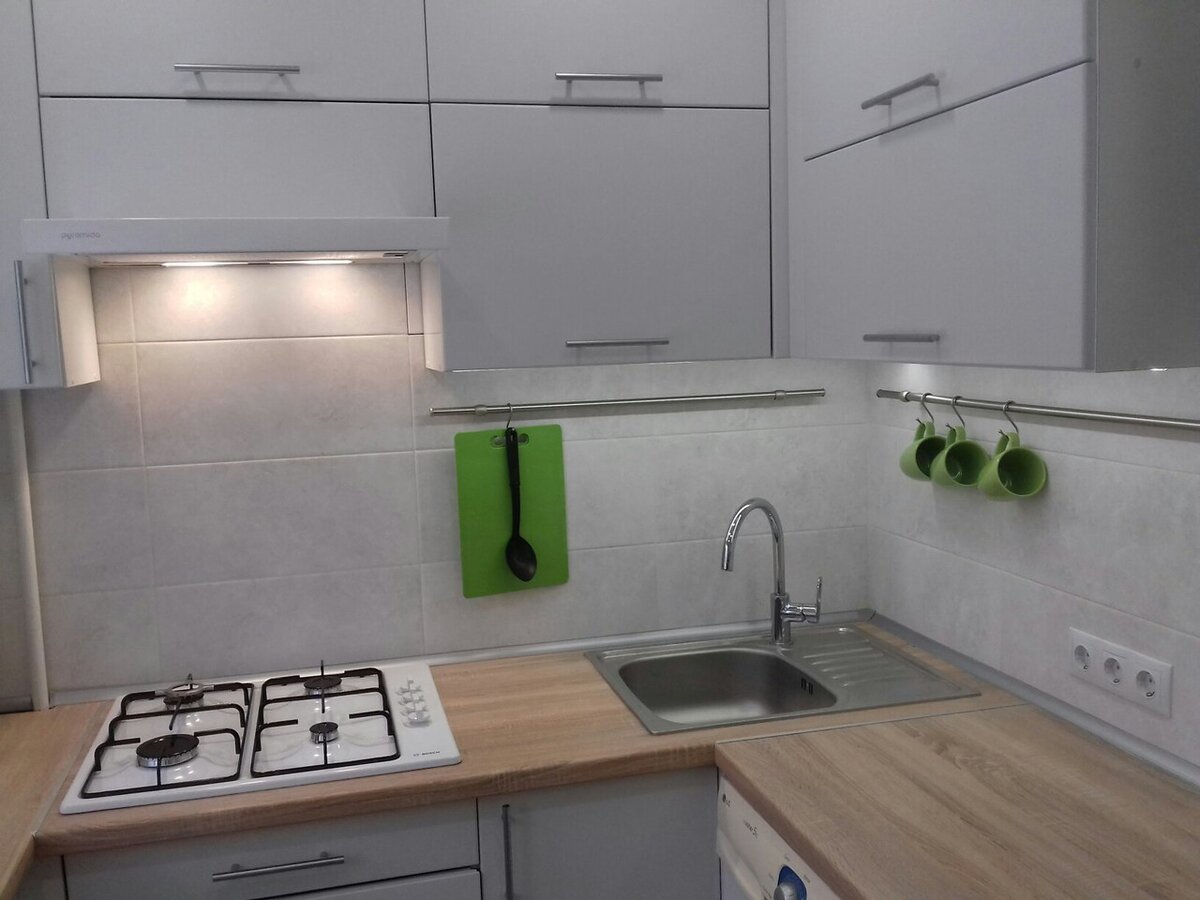 Только моя по ощущениями просторная, а эта крошка... Ошибки этой кухни будут описаны в самом конце, а также будет предложено решение, как сделать лучше. Читайте до конца! Размеры кухни 2000 мм на 2700 мм. Короткая сторона составляет 1600 мм. Расположение мебели и техники Справа налево Низ Угол Угол Угол Холодильник (Видите на последнем фото торчат его ручки?) Верх Угол Плюсы Минусы Как можно было бы поступить грамотнее? 1) Стиралку отправить в ванную комнату. Поставить раковину Пилот или аналог. Пример того, как машинка влезает даже в самую маленькую ванную комнату. 2) Не надо было делать широкий подоконник. Он сожрал почти 1 кв.м. пространства. 3) Если бы кухню расположили по прямой: бутылочница 15 см, шкаф под духовку на 60 см, шкаф шириной 30 см, посудомоечная маш