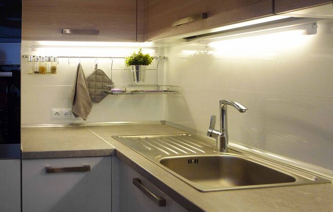 Самые практичные столешницы делают из современных композитных материалов, в состав которых входят природные минералы, пигменты и связующие акриловые смолы. На поверхности так называемого искусственного камня не остается пятен даже от въедливых жидкостей, он не впитывает воду и не царапается. Ухаживать за ним так же просто, как за ламинатом, а срок службы практически неограничен.