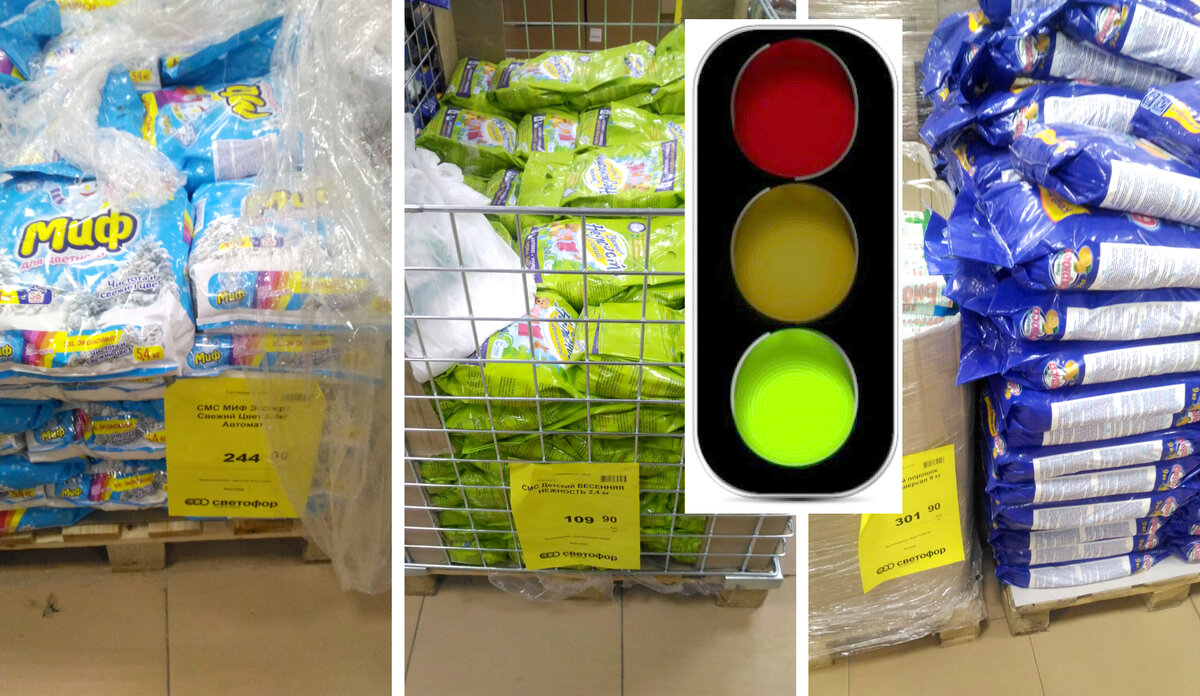 Изучая ассортимент «Светофора», пришла к выводу, что условно все товары можно разделить на три категории в соответствии с названием сети: красный – покупать не стоит, желтый – можно присмотреться, оценить риски, и зеленый – качеству можно доверять Начнем с зеленого цвета. Таких товаров в «Светофоре» достаточно много. Сковородки от российского производителя «Мастерица» с антипригарным покрытием нареканий у хозяек не вызывают. Любители здорового питания могут приобрести сушилку для фруктов этого же производителя. Не вызывает сомнений в качестве и форма для запекания из жаропрочного стекла, изготовленная на Васильевском стекольном заводе. Края у формы аккуратно закруглены, стенки без сколов. Конечно, при покупке такую форму стоит обязательно проверить. На кухне пригодятся кухонные весы. По выгодным ценам можно приобрести стиральные порошки известных производителей. Гель для унитаза хорошо справляется с загрязнениями и известковым налетом. С уборкой в доме поможет справиться швабра, насад