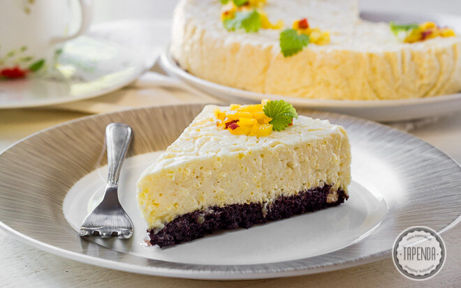 Я предлагаю идеальное сочетание шоколадного коржа с персиковым кремом. Приготовление десерта с учетом подготовки и выпечки занимает около 2 часов. Я рекомендую подавать охлажденный десерт. Если вы хотите сделать десерт в большем или меньшем количестве, я рекомендую использовать калькулятор. ИНГРЕДИЕНТЫ ДЛЯ ТЕСТА: сахар - 50 г яйца - 2 шт. какао - 25 г мука - 17 г разрыхлитель - 5 г соль - щепотка ИНГРЕДИЕНТЫ ДЛЯ крема: персики - 3 шт. сахарная пудра - по вкусу натуральный йогурт - 190 мл крем 30% - 330 мл вода - 35 г желатиновый порошок - 7 г