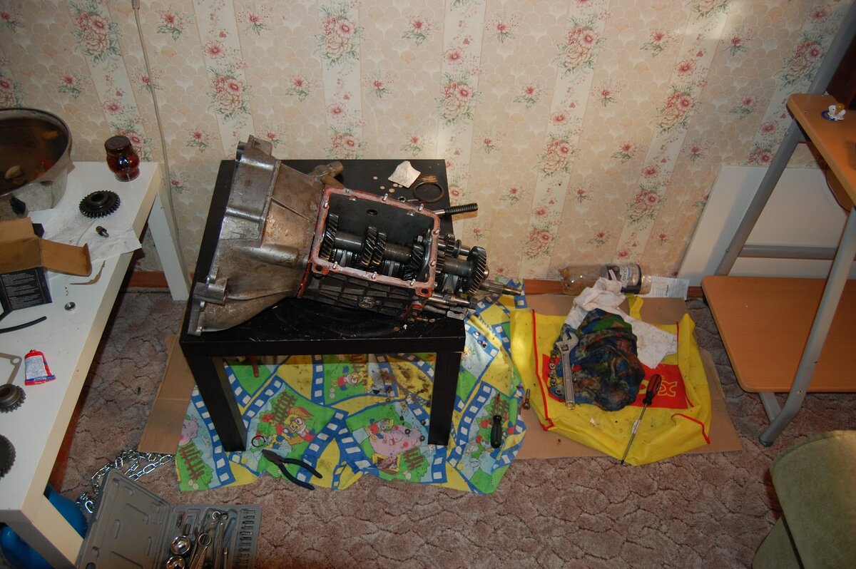 После того, как 2 года назад мы с тестем подготовили ниву для худо-бедно езды по хорошим дорогам, настало время, подготовить ниву для езды по умеренному бездорожью в дни распутицы. Начал я с КПП, к тому же последние месяца 3, при запуске двигателя в коробке что-то стучало. Что характерно стук появлялся в первые 5 минут после запуска машины, и под небольшой нагрузкой. Успешно получалось не обращать внимание на этот звук до момента невозможности проехать в деревню. Снял коробку без проблем, даже как то быстро и легко для меня. Раздатку поставил в очередь, до момента пока не разберусь с коробкой. При разборке коробки все шло гладко, даже удивлялся тому, как все складно складывается и дивно делается. Но радовался я ровно до того момента, пока не узнал что в штоках вилок сцепления не 2 блокировочных сухаря, а три. В штоках вилок сцепления 3 блокировочных сухаря Один сухарь я успешно потерял и пришлось заказывать по интернет-магазину, потому как оббежав несколько магазинов, продавцы тольк