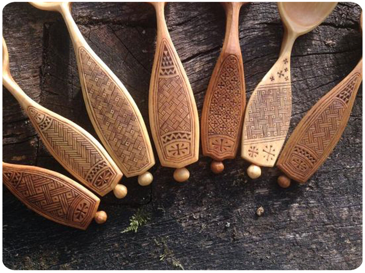 Слышали ли вы о такой малораспространенной декоративной технике, как колросинг ( kolrosing, kohlrosing)? Суть ее в следующем: на дереве аккуратно прорезаются бороздки орнамента, в которые затирается краситель. Чаще всего используется молотая корица, уголь и кофе, из-за чего рисунок внешне схож с выжиганием. Прелесть этой техники в том, что на ощупь, и тем более, на глаз, рельефность незаметна, да и линии куда тоньше. Как это делается. Важный этап - подготовка поверхности. Древесина должна быть очень тщательно отшлифована, ведь каждая неровность потом забьется красителем, наравне с прорезанным рисунком. К выбору древесины так же стоит подойти основательно. Узор хорошо будет смотреться на гладкой, ровной древесине типа бука, березы, клена; крупнопористые породы (такие как дуб, ясень) не подходят.