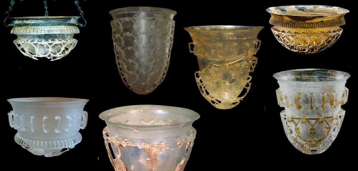 Перфорированная гипсовая форма оставалась в двухслойной заготовке до тех пор, пока не заканчивалось охлаждение стекла. В этом состоянии заготовка была отдана диатретчику или на шлифовальный станок для диатрет (рис.5.а). Отверстия во внешней оболочке для образования сетки делаются восемью надрезами. При этом основная характеристика формы сетки создавалась в углах автоматически, и получались перекрестные орнаменты сетки (рис.5.b, рис.6.а). «Диатретчик» завершал свою работу, удалив гипс между двумя слоями, утончив первоначально толстые круглые стержни (рис.6.b) и, возможно, немного украсив сосуд шлифованием и гравировкой. Вырезанные фрагменты стекла внешнего слоя могли снова идти на переплавку, - таким образом, потеря материала была крайне низкой. Это сильно отличается от вырезания диатреты из одной толстостенной заготовки, в которой три четверти стеклянного материала превращаются в совершенно бесполезную шлифовальную пыль, загрязненную абразивами.