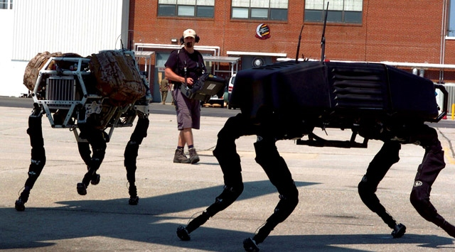 BigDog был четвероногим роботом, созданным в 2005 году, с идеей, что он будет сопровождать американских солдат по сложнопроходимой местности и в первую очередь служить в качестве мула, но проект был законсервирован, потому что BigDog был слишком громким, чтобы использоваться в бою. Он был рассчитан на перенос 340 фунтов (150 кг), мог ходить со скоростью до 6 миль / ч через скалы, снег и грязь и мог пересекать склоны до 35 градусов. Только представьте как в бою один из таких роботов выходит из щебня и дыма. Это было бы похоже на что-то из ужасного научно-фантастического фильма.