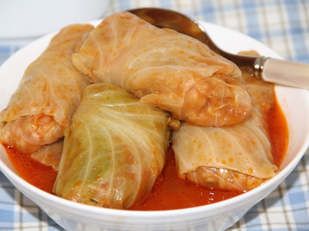 А знаете ли вы, что по одной из версий название «голубцы» пришло к нам в XVIII-XIX веках, когда большой популярностью в России стала пользоваться французская кухня и, в частности, такое её блюдо, как голуби, жаренные на решётке. Спустя некоторое время на решётке стали жарить и «ложных голубей» - фарш, завернутый в капустные листья. Это блюдо впоследствии получило название «голубцы». Необходимые продукты: · мясной фарш – 0,5 кг; · капуста белокочанная – 1 средний кочан; · рис круглый – 100 гр; · яйцо – 1 штука; · лук репчатый – 2 штуки; · томатная паста – 2 ст. ложки; · сметана – 2 ст. ложки; · растительное масло – 100 мл; · мука – 1 ст. ложка; · соль, перец по вкусу Способ приготовления: В мясной фарш добавьте очень мелко нарезанный лук, соль, перец и яйцо, перемешайте. Рис отварите и промойте холодной водой, остудите, смешайте его с фаршем. Кочан капусты опустите на 2-3 минуты в кипяток, затем отделите крупные листья и удалите жёсткие прожилки. В центр каждого листа положите столовую