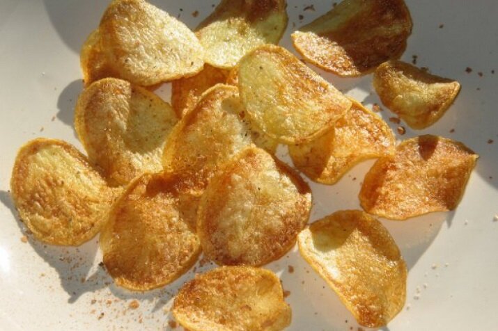Чипсы из картофеля довольно популярное блюдо во всем мире. Но многие люди не употребляют в пищу магазинные снеки из-за их вредности для здоровья. Заводские чипсы, в основном, не производятся из натурального цельного картофеля. Это порошок из картофельных хлопьев и кукурузного крахмала. Поэтому многие хозяйки задумывались как приготовить в домашних условиях хрустящую закуску, которую можно есть детям и взрослым. Без канцерогенных жиров, усилителей вкуса, красителей, и мало чего еще. Картофельные чипсы можно приготовить четырьмя способами: в микроволновой печи; в духовке; в мультиварке; на плите. Подготовка. Картофель 5-6 шт. нужно вымыть, вытереть насухо, затем почистить и нарезать овощерезкой. Так получаются тонкие ломтики одинаковой толщины. Выложим на бумажное полотенце, чтобы картофель немного подсох. Далее рассмотрим все варианты приготовления по порядку. В микроволновой печи картофельные чипсы можно сделать как с подсолнечным маслом, так и без него. Для тех, кто следит за фигу