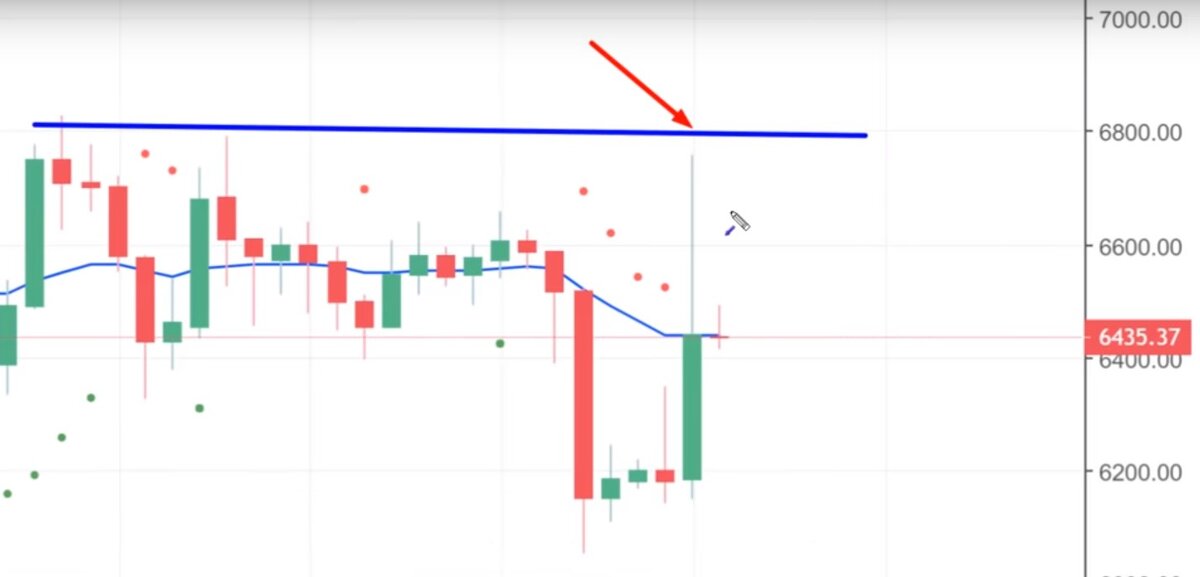 Как вы уже знаете, в понедельник Bitcoin сильно вырос в цене, что видно на графике. Это случилось в момент начала кредитной паники на Bitfinex и падения цены Tether (#USDT). Как профессионалов, нас мало интересует информация о причинах изменения цены, так как это информация для масс. Нам нужна информация для классов. Некоторое время мы находимся в ожидании серьёзного движения цены Bitcoin, а ранее в статьях я прогнозировал начало потенциального ралли цены во второй половине октября. Могли ли вчерашние события стать катализатором для дальнейшего роста? Несомненно, но стоит обратить внимание на несколько факторов. Во-первых, не смотря на стремительность вчерашнего роста, цене не удалось уверенно преодолеть ключевой уровень сопротивления на $6 800, при этом на Bitstamp цена и вовсе не достигла этого уровня. Во-вторых, свеча не закрылась выше скользящей средней за 21 день, что является признаком слабости покупателей. Если Bitcoin всё же начнёт октябрьское ралли, цена должна преодолеть