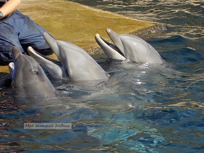 Начало: Зоопарк в Нюрнберге Особо следует рассказать о дельфинарии нюрнбергского зоопарка. В определенные часы , Пару раз в день в дельфинарии проводятся представления с дельфинами и тюленями. Это по настоящему весело и захватывающе! Зоопарк расположен условно на 3 уровнях высоты, переходы между которыми возможны на серпантинных дорогах. Дельфинарий расположен на среднем уровне. Детская железная дорога (взрослые тоже садятся) расположен на самом нижнем уровне. В зоопарке в разных концах есть кафе и ресторан. Голодными там не остаться. Но люди в основном сосредоточены на движении, так что заведения мне показались полу пустыми. Оригинал на сайте Мой немецкий дневник