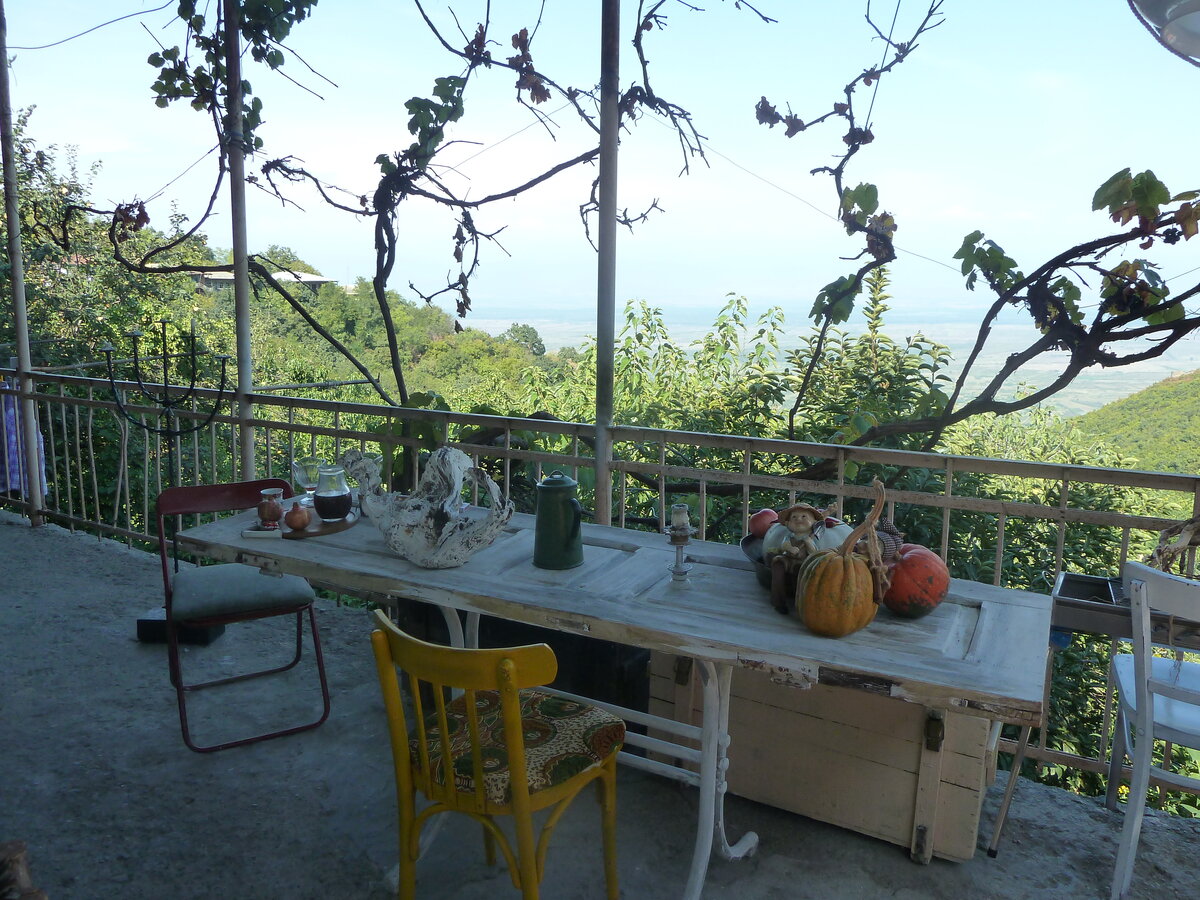С понедельника, 8 июля 2019 года, прекращается прямое авиасообщение между Россией и Грузией. Надолго ли -- кто знает? Как обычно, политические мотивы рикошетом долбанули по обычным туристам. Я не собиралась в Грузию в ближайшее время, поэтому сейчас остается только сочувствовать тем, у кого накрылся спланированный отдых, и радоваться, что сама успела слетать туда пару лет назад. Городок Сигнахи считается туристической жемчужиной Грузии, и я вполне понимаю, почему. Более 1-2 дней делать там нечего, однако приезжать я рекомендую с ночёвкой: всё-таки дорога из Тбилиси порядка 100 км, за один день осилить это тяжеловато. Ну а славных частных гостиниц, чтобы переночевать, хватает. Мы выбрали гостевой дом с балконом прямо над прекрасной Алазанской долиной. Вообще Сигнахи называют городом любви: не только из-за романтической атмосферы его узких улочек и холмов, но и из-за круглосуточного загса (или как называется грузинский аналог этого учреждения?). Правда, толп влюбленных, желающих срочно с