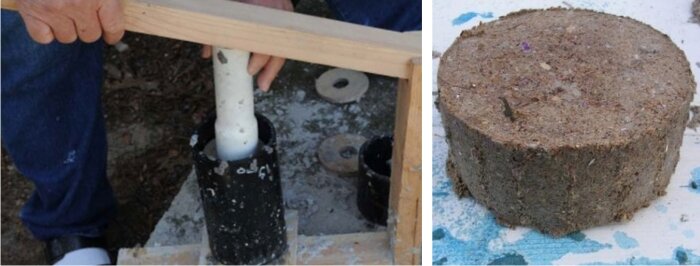 Для приготовления брикетов замочите в ванну или большой таз с водой листья, картон, газету, мелкие стебли, шелуху, опилки или солому. Можно использовать все сразу. Добавьте в раствор угольной пыли. Дайте постоять 1 – 2 суток. Далее нужно все измельчить с помощью бетономешалки или строительного миксера. После положите под пресс, чтобы ушла вся вода. Для растопки бани – это самый лучший вариант.
