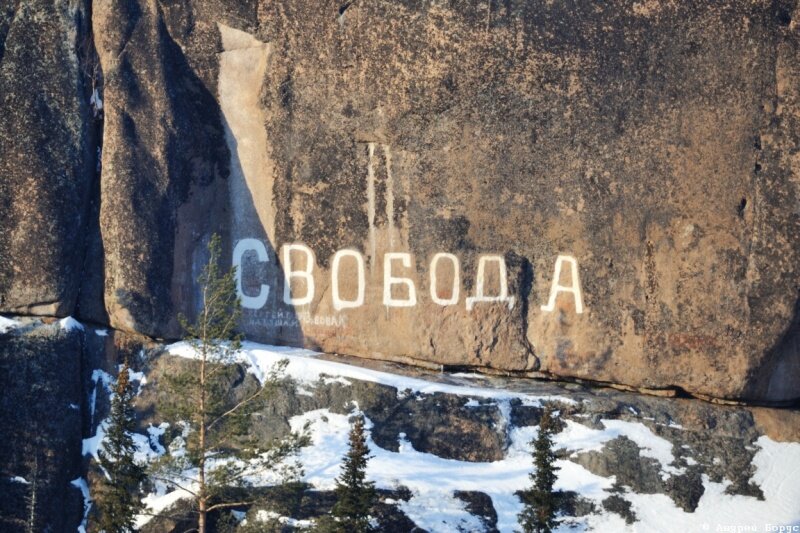 Архитектуру здания музейного центра часто сравнивают со знаменитыми скалами из-за цвета и фактуры гранита, которым он облицован. Свобода – реплика известной надписи, нанесенной на Второй столб больше ста лет назад революционером. Она до сих пор жива, ее обновление – один из важных столбистских ритуалов.