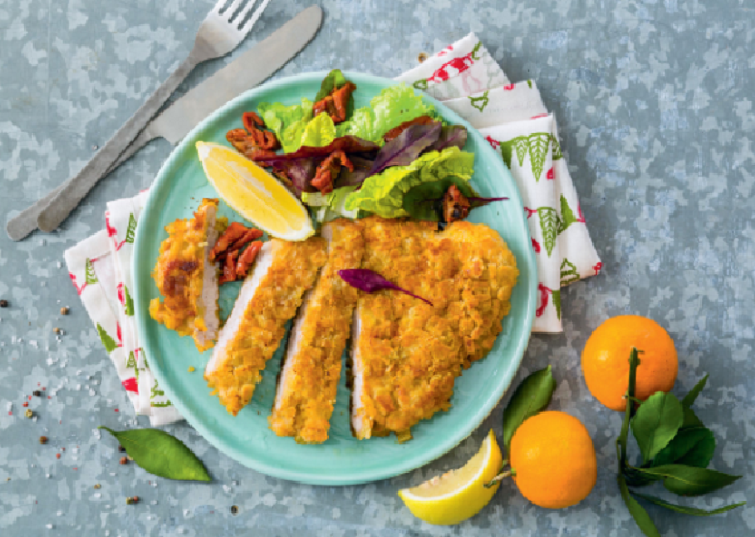 Для приготовления понадобится: пол килограмма вырезки из телятины 5-6 столовых ложек панировочных сухарей крупного помола 50 миллилитров молока пара сырых яиц 2-3 столовых ложки муки грамм 20-30 сливочного масла грамм 100 подсолнечного масла соль, перец - по вкусу лимон - для подачи.
