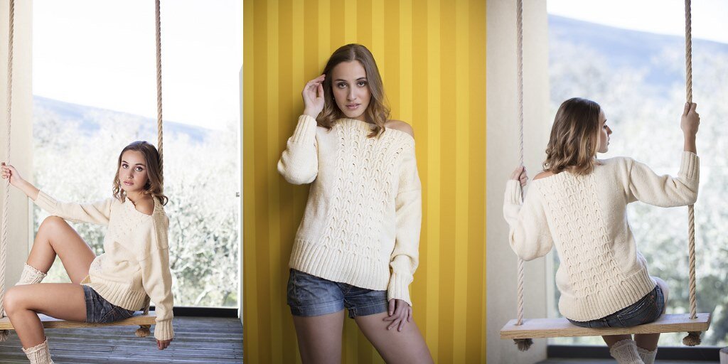 Вязание спицами женского джемпера с косами. Джемпер вяжется спицами отдельными деталями снизу вверх.