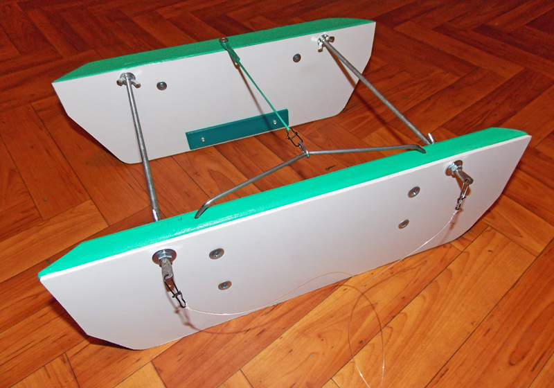 Итак, кораблик. Как правильно ловить этой снастью? Об изготовлении кораблика и монтаже этой снасти можно более подробно узнать здесь. Но некоторые аспекты можно дополнить и уточнить в данной статье. Кораблики бывают самые простые, где так называемые саночки просто крепятся в одной точке ближе к носу этого миниатюрного катамарана. Более удобны реверсивные кораблики. Они также бывают нескольких видов. Самый простой реверс состоит из скобы и кольца, к которому прикреплена основная леска. Кольцо бегает по скобе от носа к корме, создавая подъёмную силу и сдавая назад. Эти переключения осуществляются натяжением буксировочной лески и её ослаблением. Другой вид реверса представляет собой такое же кольцо, которое переключается с одного положения на другое по скобе, имеющей форму тупого угла. Здесь уже есть некий фиксатор в виде резины. И переключения происходят с некоторым усилием, что гораздо удобнее в ловле. И третий вид реверса представляет собой рычажок, к которому крепится основная леска. Этот рычажок перекидывается также под воздействием натяжения и ослабления буксировочной лески, имеет фиксатор в виде пружины, натяжение которой можно регулировать. Большинство корабликов рыболовы делают своими руками, но уже появились кораблики заводского исполнения. На снимке представлен один из них.