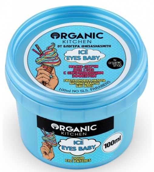 Organic shop пополнил свою коллекцию маленьких баночек Organic kitchen новыми средствами. Это я прочитала в рекламе и решила присмотреть себе что нибудь. Мой выбор пал на маску - патчи для глаз с охлаждающим эффектом "ICE EYES BABY". Натуральный продукт в красивой упаковке за 350 рублей. Средство оказалось жидковатым, такая водянисто - гелевая консистенция. Способ применения прост - нанести на область вокруг глаз, подождать 15 минут и смыть водой. Через две минуты после нанесения маска начинает высыхать и холодить в этом ее плюс. Трудности начались со смытием, средство просто размазывается по лицу. После нескольких применений какого-либо эффекта от маски я не заметила: мешки не исчезают, синяки не светлеют, увлажнение тоже отсутствует. Хотя производитель утверждает: Глаза сияют здоровьем и энергией, больше никакой усталости. Патчи эффективно разглаживают мимические морщинки и осветляют кожу. Био алое успокаивает и охлаждает.,антиоксиданты способствуют сохранению молодости, а гиалуроно