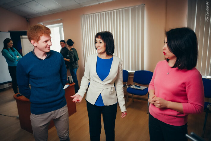 Зифа Димитриева: мотивация вдохновляет! На фото: Александр Лаухин, владелец сети Детских спортивных клубов в Одинцово, Гузель Сафиуллина, генеральный директор клининговой компании «АЗОН-Фарм» и другие руководители. Фотограф: Денис Домбровский.