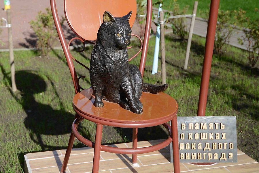 Кошки совершенно удивительные животные, их любят и почитают. В городе на Неве к котам отношение особенное. Было в истории этого удивительного города несколько эпизодов, когда этим маленькие звери сделали большое дело, связанное с спасением и защитой его жителей. Памятников котам и кошкам имеется достаточно. Есть такие и в Петербурге. Их автором стал Владимир Петровичев. На Малой Садовой улице можно найти 2 небольшие фигурки домашних котов, от которых идет какая-то добрая энергетика. Кота Елисея и его подругу Василису найти не так просто, потому, что расположены они на стене домов, расположенных друг напротив друга. Важный Елисей сидит на небольшом выступе дома № 8, спокойно изучая пешеходов. Кокетливая Василиса гуляет по карнизу дома, расположенного с другой стороны улицы. История этих памятников связана с трагическими страницами истории города на Неве. Город одолевали крысы, и после снятия блокады в город был доставлен эшелон с котами и кошками из Ярославля. В обескровленном город