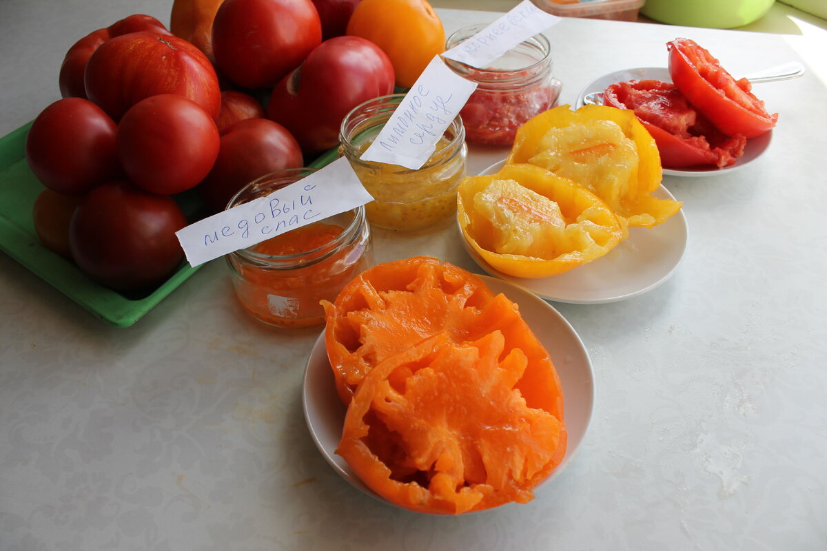 У томата на семена лучше взять плоды с главного стебля и те, что вызрели на кустах одними из первых. У детерминантных сортов снимают помидоры с 1-2-й кисти, у индетерминантных — со 2-5-й. Подержав еще 2-3 дня дома до полного дозревания, их разрезают поперек ножом, извлекают семена вместе с соком и мякотью и оставляют на 3-5 дней (в зависимости от погоды) для сбраживания в стеклянной посуде. Емкость периодически встряхивают, чтобы не образовывалась плесень. Признак окончания брожения — осветление сока и оседание семян на дно. Перебродившую массу хорошо перемешивают (если мало жидкости — можно добавить воды). После того как содержимое отстоится, верхний слой сливают долой, а полновесные семена хорошо промывают водой из-под крана. Остается только высушить семена и отправить на хранение.
