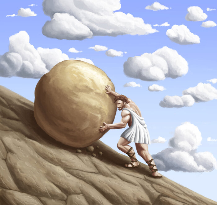 Сизиф - в древнегреческой мифологии строитель и царь Коринфа, после смерти приговорённый богами вкатывать на гору, расположенную в Тартаре, тяжёлый камень, который, едва достигнув вершины, раз за разом скатывался вниз. Отсюда выражение «сизифов труд», означающее тяжёлую, бесконечную и безрезультатную работу и муки. Как Бог ещё не разочаровался в человеке? Иногда я думаю, что верить в человека, продолжать любить его, прощать и направлять провидение восстановление – это настоящий «Сизифов труд». Человек непостоянен, изменчив, по сто раз на дню меняет своё мнение и во всём ищет свою выгоду! Каково Богу в этой ситуации? Часто мы думаем, можно ли доверять Богу? Но более важный вопрос, может ли Бог доверять нам? Представьте себя врачом, который кропотливо делает операцию пациенту на протяжении 20 часов, и операция проходит очень успешно, жизнь пациента оказывается вне опасности, а потом в результате простой халатности медперсонала пациент умирает. Представьте себя строителем, который от